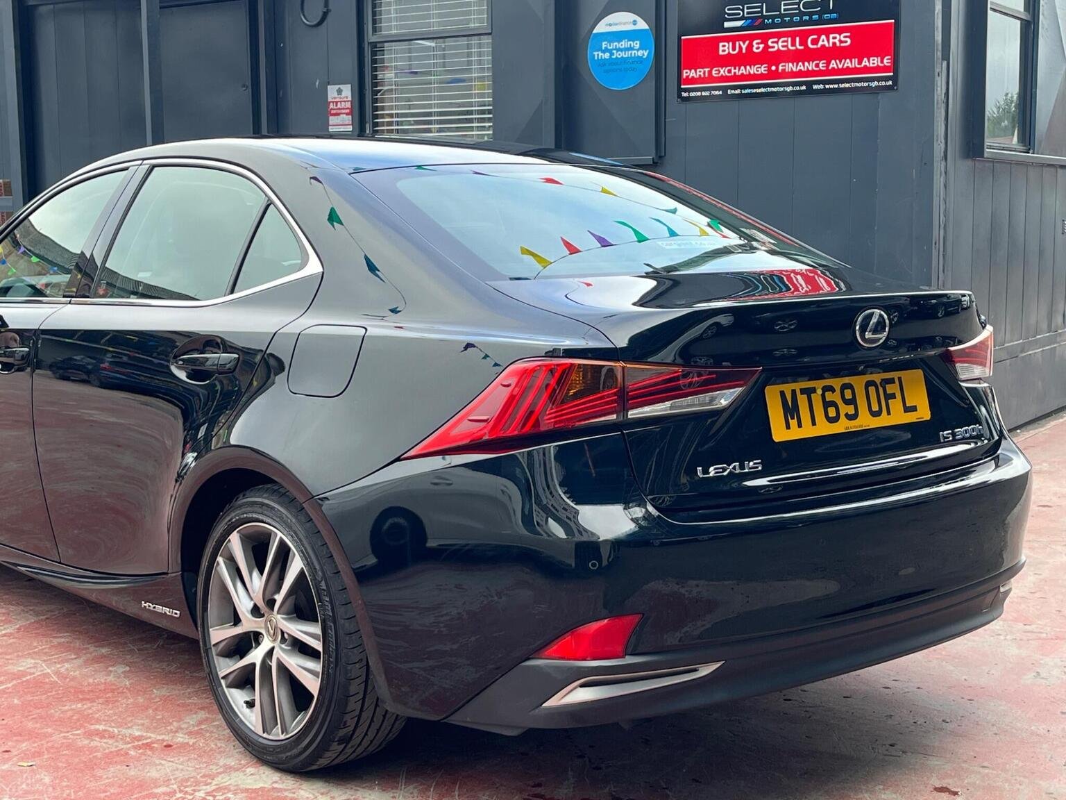 17in Alloy Wheels, 2 Map Pockets in the Rear, 2 x ISOFIX Child Rear Seat Restraints, 2x Coat Hooks in Rear, 2x Cup Holders in Centre Console, 2x Sun Visors with Vanity Mirror and Lamp, 2x USB Sockets, 3 Spoke Leather Steering Wheel with Paddle Shift, 4 Driving Modes - Normal - EV - Eco and Sport, 4x Tie Down Hooks in Boot, 6 Stage Sequential Shift and Kick Down Switch, 60-40 Split Folding Rear Seat with Locking Function, ABS - Anti-Lock Braking System, ACC - Adaptive Cruise Control, ASC - Active Sound Control, AUX Connection, Analogue Clock, Anti-Theft System, BAS - Brake Assist System, Black Scuff Plates, Bluetooth Mobile Phone Connectivity, Body Adhesive - Laser Screw Welding and Laser Brazed Roof Structure, Card Holder Installed In the Drivers and Passengers Sun Visors, Centre Armrest with Storage, Console Knee Pad, Curtain Shield Airbags - Front and Rear, DAB Radio, Daytime Running Lights - LED, Driver and Front Passenger 2-Stage Airbags, Driver and Front Passenger Knee Airbags, Driver and Front Passenger Side Airbags, Driver and Passenger 6-Way Manually Adjustable Front Seats, Driver and Passenger Door Pocket with Bottle Holder, Dual Zone Climate Control Air Conditioning System, EBD - Electronic Brakeforce Distribution, ECB - Electronically Controlled Braking, EPS - Electric Power Steering - Speed Sensitive, Front Seat Belts with Pre-Tensioners - 3 Point ELR - Emergency Locking Retractor, Front and Rear Electric Windows with Jam Protection, Front and Rear Interior LED Lighting, Gloss Black Inlays, HAC - Hill Assist Control, Headlight Cleaners, Heated and Electrically Folding Outside Mirrors with Turn Indicators and Puddle Light, LED Brake Lights and Rear Lights with Emergency Brake Signal, LED Headlights with Auto High Beam, Lane Change Flasher Function, Leather Gear Lever, Lexus Media Display, Lexus Navigation with Full European Map Capability, Lexus Safety System Plus, Locking Wheel Nuts, Manually Adjustable Steering Column with Lock Protect, PUH - Pop Up Hood, Parking Sensors - 4x Front and 4x Rear, Passenger Airbag Cut Off Switch, Push Button Start, Rain Sensitive Windscreen Wipers, Rear Armrest with 2 Cup Holders, Rear Fog Light, Run Flat Tyres, Seats - Front Heated, TPWS - Tyre Pressure Warning System, TRC - Traction Control System, Textile Carpet Mats, Two Motion Door Lock - Double Lock, Tyre Repair Kit, VDIM - Vehicle Dynamics Integrated Management, VSC - Vehicle Stability Control, Window Etching